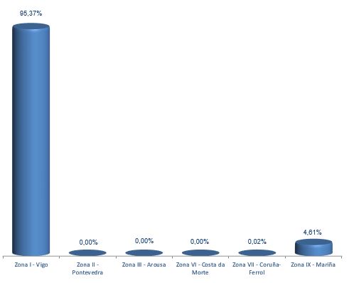 | Zona VII - Coruña-Ferrol | 3 | 288 | 0,02% | 561 | 0,02% | 1,95 |