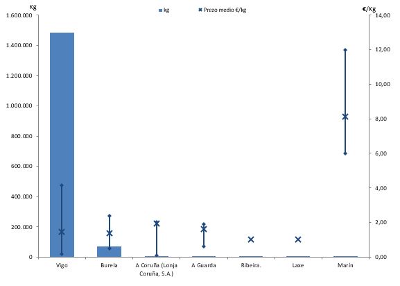 | A Coruña (Lonja Coruña, S.A.) | 3 | 288 | 0,02% | 561 | 0,02% | 1,95 |
