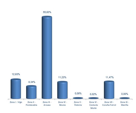 | Zona III - Arousa | 248 | 184.876 | 55,93% | 4.264.951 | 58,49% | 23,07 |