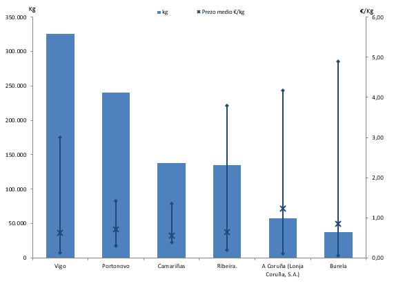 | A Coruña (Lonja Coruña, S.A.) | 153 | 57.890 | 5,59% | 70.680 | 9,90% | 1,22 |