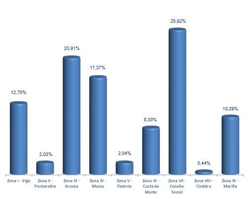 | Zona VI - Costa da Morte | 242 | 1.406.589 | 8,30% | 1.346.078 | 7,18% | 0,96 |
