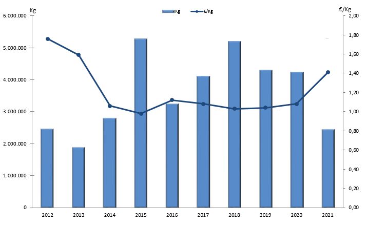 | Nº días | kg | % | Euros | % | Euros/kg | |