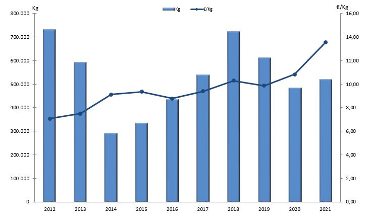 | Nº días | kg | % | Euros | % | Euros/kg | |