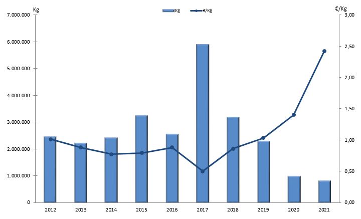 | Nº días | kg | % | Euros | % | Euros/kg | |