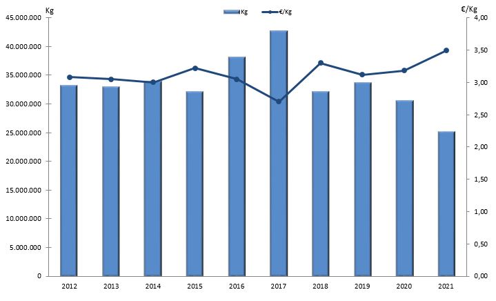| Nº días | kg | % | Euros | % | Euros/kg | |