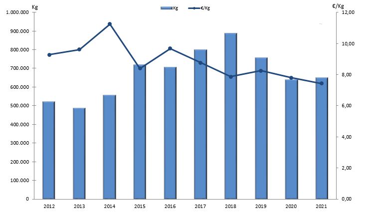 | Nº días | kg | % | Euros | % | Euros/kg | |