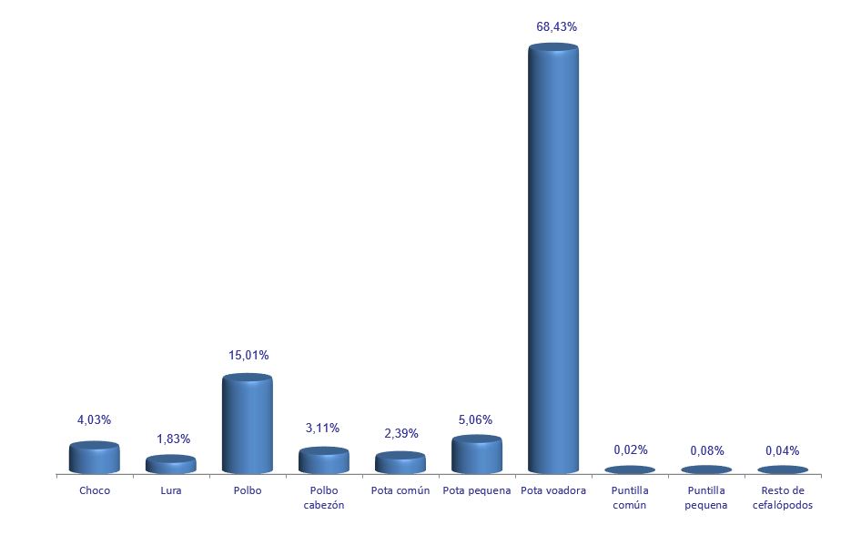 | Polbo cabezón | 469.105 | 3,11% | 1.249.542 | 2,71% | 2,66 |