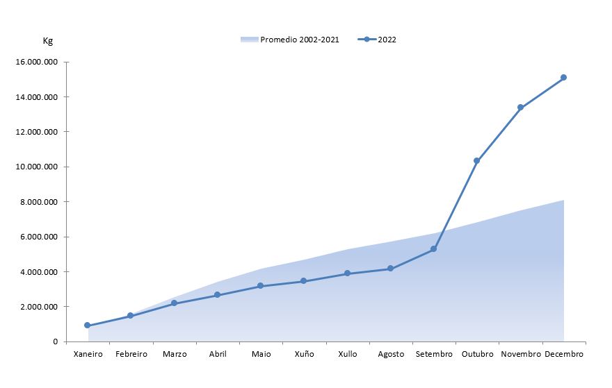 | Polbo cabezón | 469.105 | 1.249.542 | 231.081 | 581.429 | 238.024 | 668.113 | 103,00% | 114,91% |