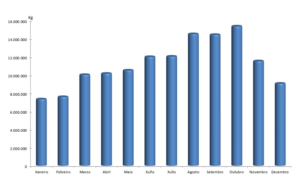 | Bivalvos | 409.445 | 510.512 | 505.031 | 389.651 | 438.168 | 533.252 | 594.815 | 727.600 | 468.431 | 714.425 | 1.158.628 | 1.106.490 | 7.556.448 |