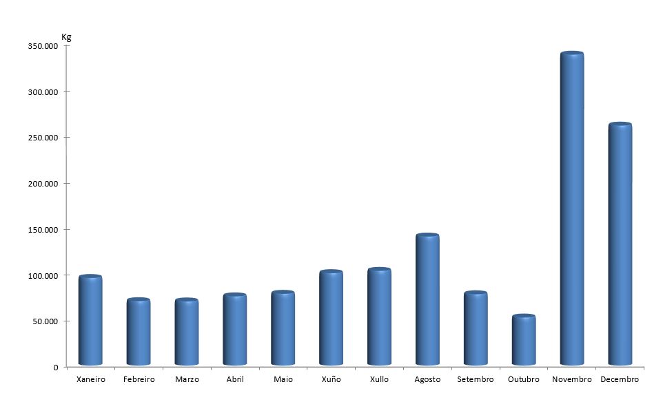| Percebe | 12.595 | 8.296 | 12.194 | 19.522 | 21.345 | 24.000 | 37.145 | 40.046 | 17.647 | 14.911 | 6.473 | 28.619 | 242.793 |