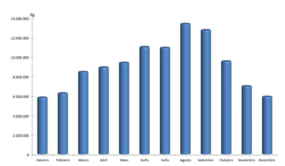 | Pescada | 2.122.825 | 2.063.120 | 2.254.150 | 1.701.222 | 1.621.119 | 1.697.073 | 1.686.443 | 1.859.178 | 1.689.328 | 1.678.352 | 1.576.150 | 2.014.373 | 21.963.335 |