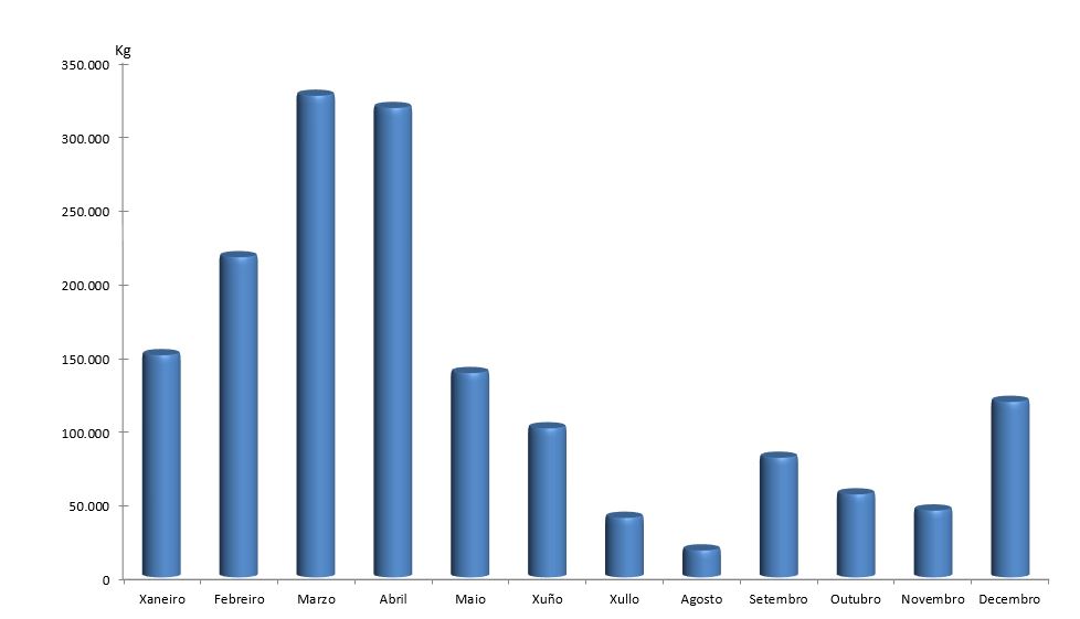 | Cogombro de mar real | 6.778 | 7.886 | 4.115 | 2.276 | 7.899 | 14.807 | 10.167 | 7.606 | 5.297 | 1.108 | 1.523 | 3.985 | 73.445 |