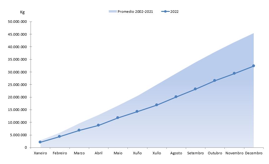 | Crustáceos | 492.250 | 9.172.424 | 459.327 | 8.941.801 | 32.923 | 230.623 | 7,17% | 2,58% |