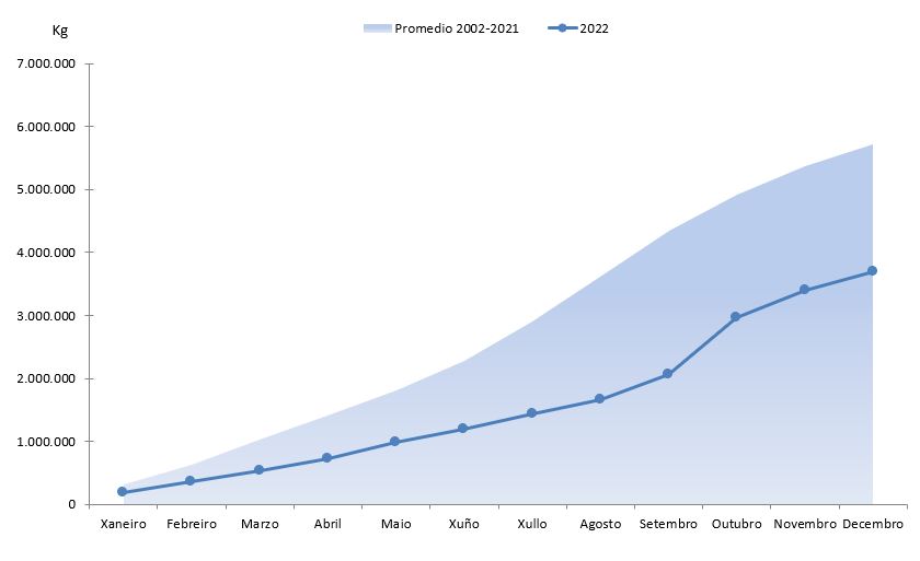 | Bueu | 421.222 | 3.129.590 | 447.726 | 2.967.695 | -26.505 | 161.894 | -5,92% | 5,46% |