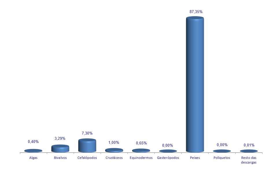 | Cefalópodos | 1.818.440 | 7,30% | 8.867.953 | 8,35% | 4,88 |