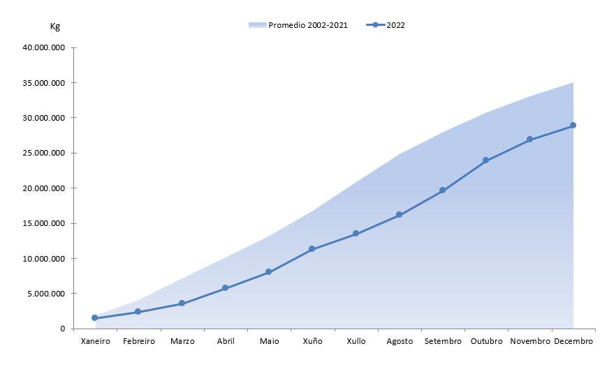 | A Coruña (Confraría) | 4.774 | 59.678 | 12.360 | 199.587 | -7.586 | -139.909 | -61,38% | -70,10% |