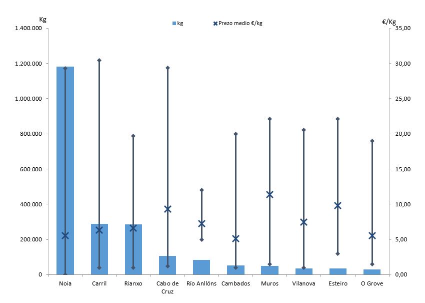 | Muros | 66 | 48.983 | 2,13% | 557.627 | 3,81% | 11,38 |