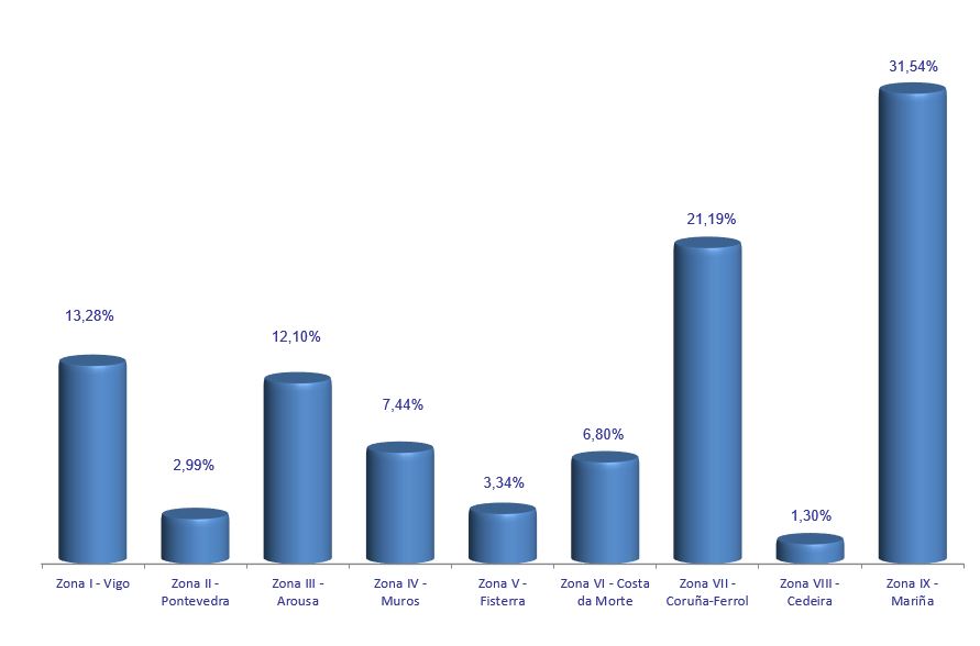 | Zona VI - Costa da Morte | 96 | 134.878 | 6,80% | 73.841 | 6,86% | 0,55 |