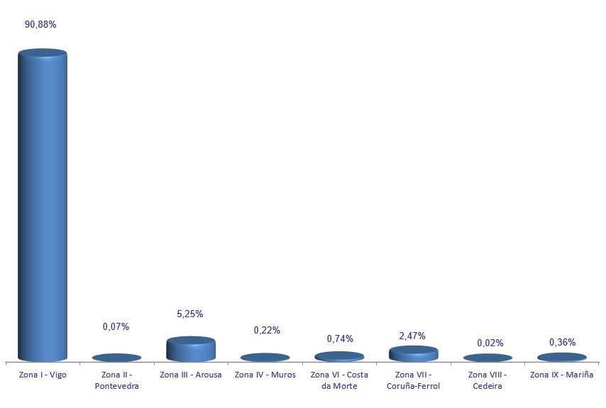 | Zona I - Vigo | 114 | 724.523 | 90,88% | 5.428.050 | 91,47% | 7,49 |