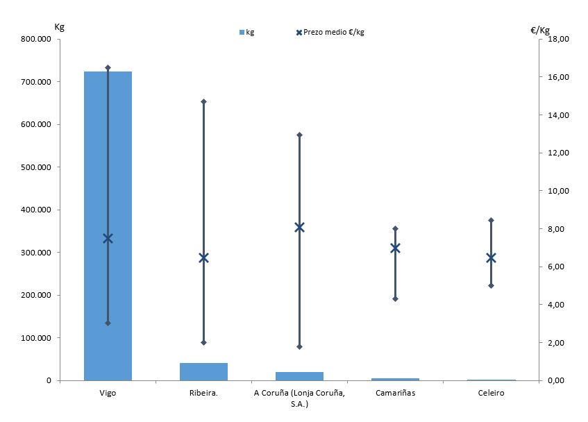 | A Coruña (Lonja Coruña, S.A.) | 78 | 19.672 | 2,47% | 159.044 | 2,68% | 8,08 |