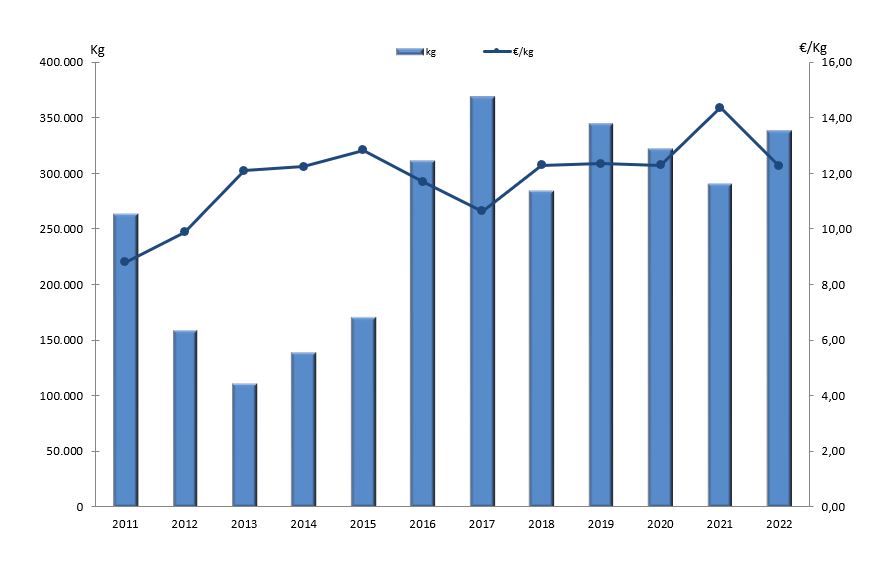 | Nº días | kg | % | Euros | % | Euros/kg | |