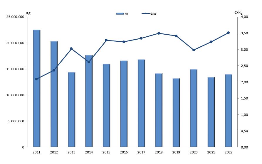 | Nº días | kg | % | Euros | % | Euros/kg | |