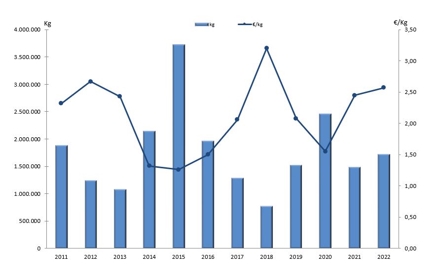 | Nº días | kg | % | Euros | % | Euros/kg | |