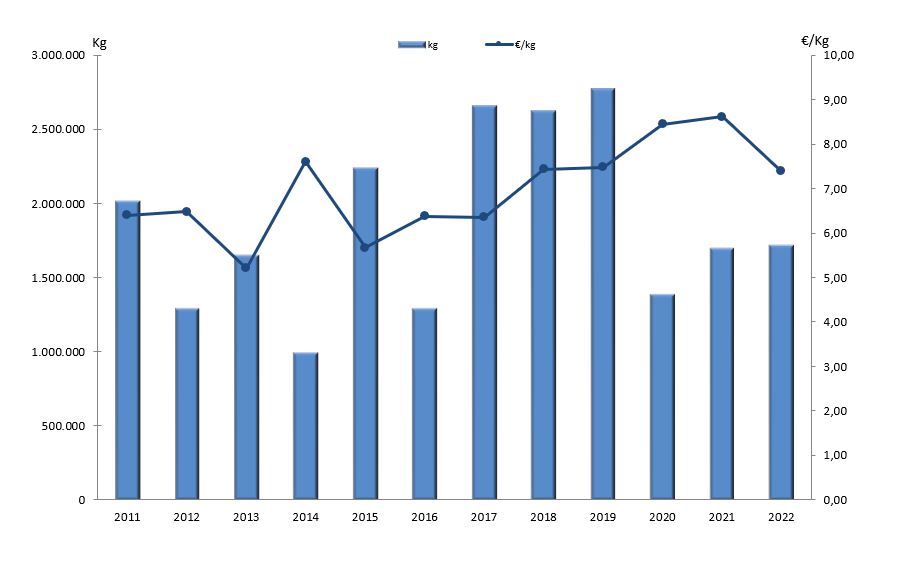 | Nº días | kg | % | Euros | % | Euros/kg | |