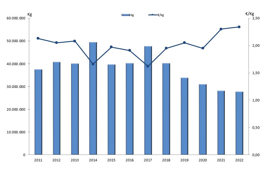 | Nº días | kg | % | Euros | % | Euros/kg | |