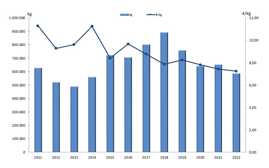 | Nº días | kg | % | Euros | % | Euros/kg | |