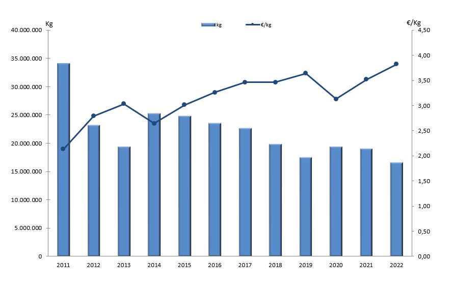| Nº días | kg | % | Euros | % | Euros/kg | |