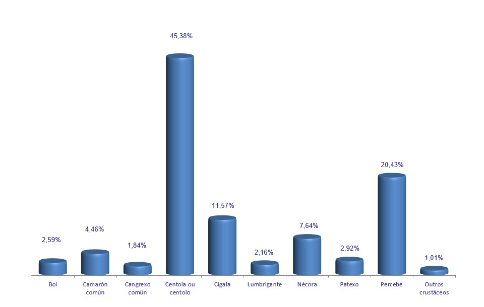 | Centola ou centolo | 512.100 | 45,38% | 5.536.275 | 26,27% | 10,81 |