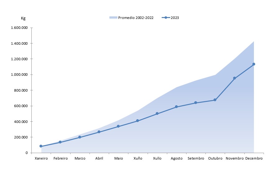 | Percebe | 230.568 | 8.711.808 | 242.793 | 8.311.062 | -12.226 | 400.746 | -5,04% | 4,82% |