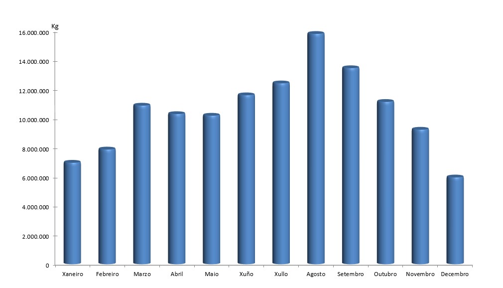 | Cefalópodos | 1.071.399 | 955.435 | 555.276 | 303.801 | 210.241 | 92.013 | 250.730 | 430.752 | 1.157.203 | 641.766 | 520.940 | 359.333 | 6.548.889 |