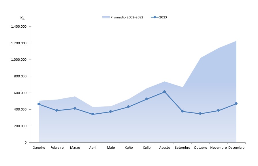| Xaneiro | 462.725 | 4.433.545 | 409.445 | 2.938.360 | 53.281 | 1.495.186 | 13,01% | 50,89% |