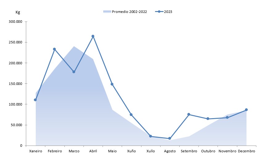 | Xaneiro | 110.037 | 986.961 | 150.598 | 1.191.279 | -40.561 | -204.318 | -26,93% | -17,15% |