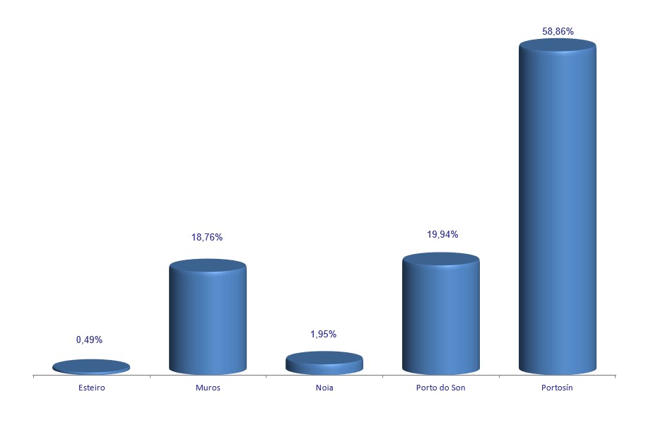 | Porto do Son | 1.215.922 | 19,94% | 1.512.310 | 14,09% | 1,24 |