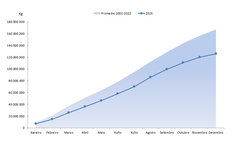 | Zona VI - Costa da Morte | 3.993.819 | 10.620.631 | 5.225.200 | 11.633.987 | -1.231.381 | -1.013.356 | -23,57% | -8,71% |