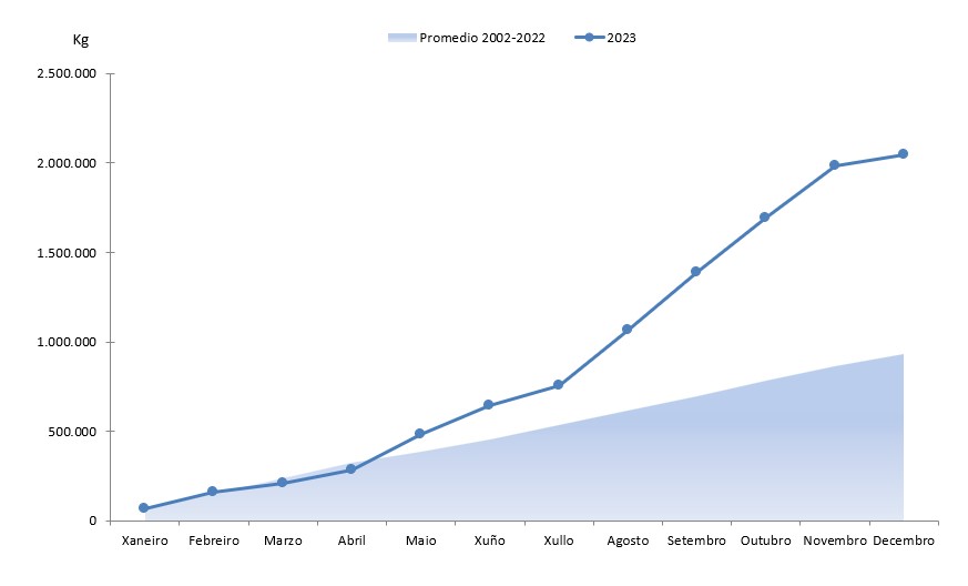 | Fisterra | 432.405 | 3.129.100 | 463.184 | 3.206.747 | -30.779 | -77.646 | -6,65% | -2,42% |