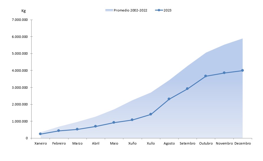 | Bivalvos | 161.271 | 2.102.104 | 112.812 | 991.177 | 48.459 | 1.110.927 | 42,96% | 112,08% |