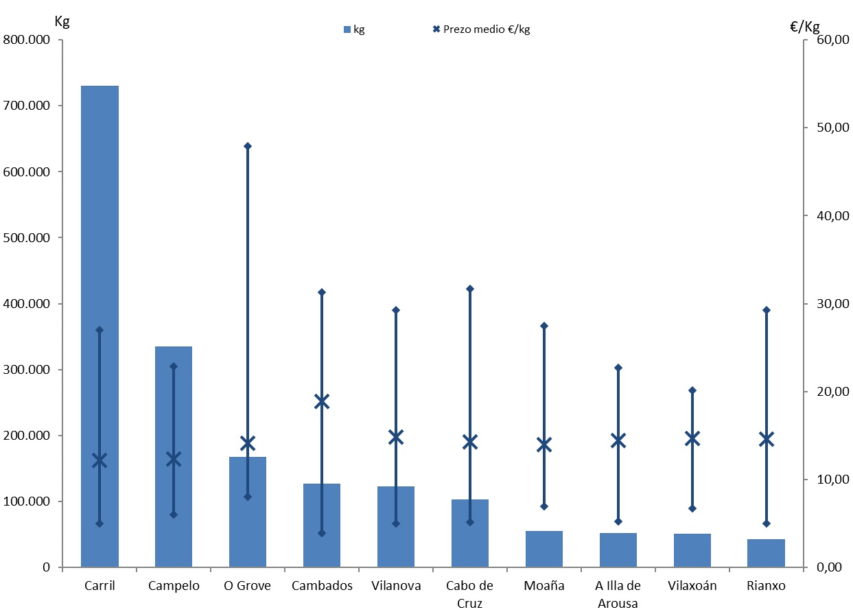 | Cambados | 217 | 126.581 | 6,24% | 2.392.521 | 8,81% | 18,90 |