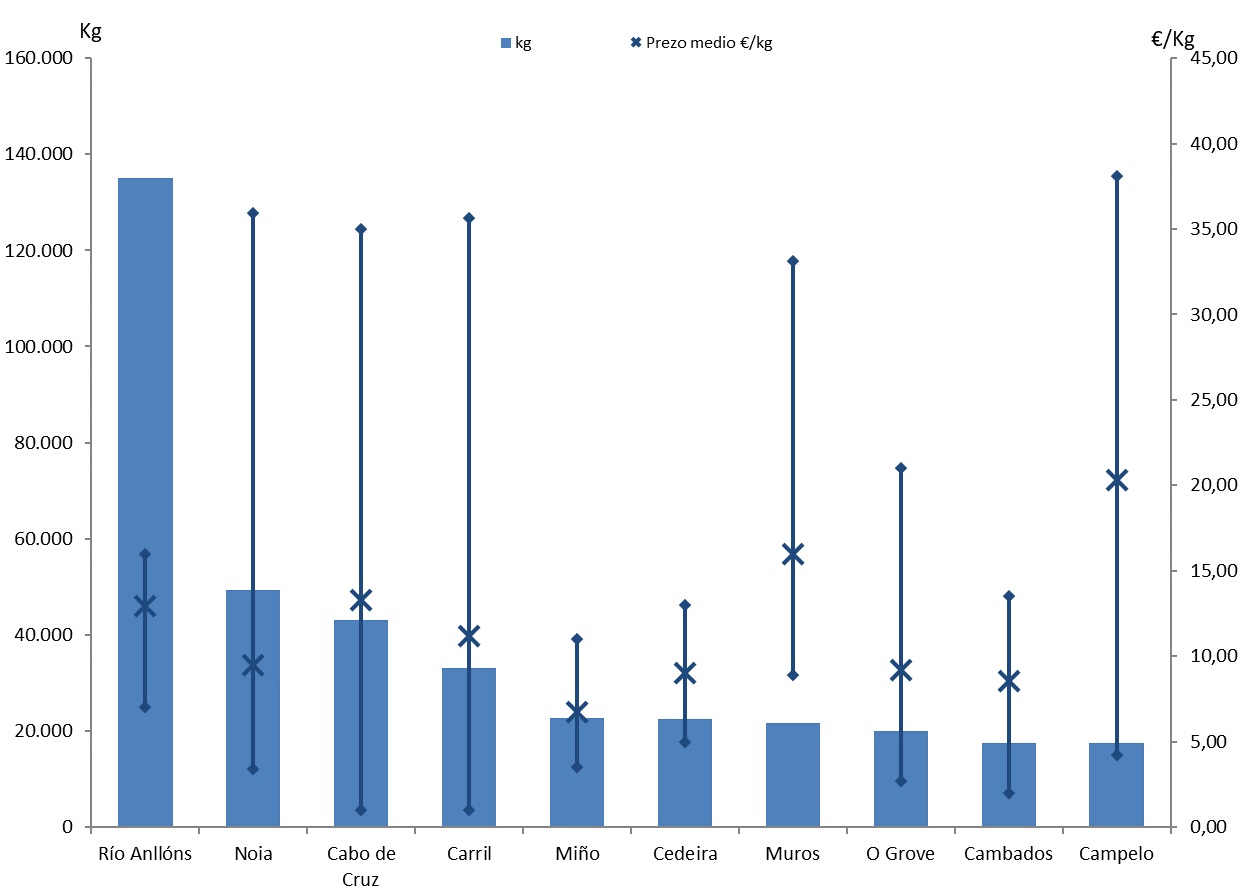 | Muros | 49 | 21.566 | 4,45% | 344.246 | 6,08% | 15,96 |