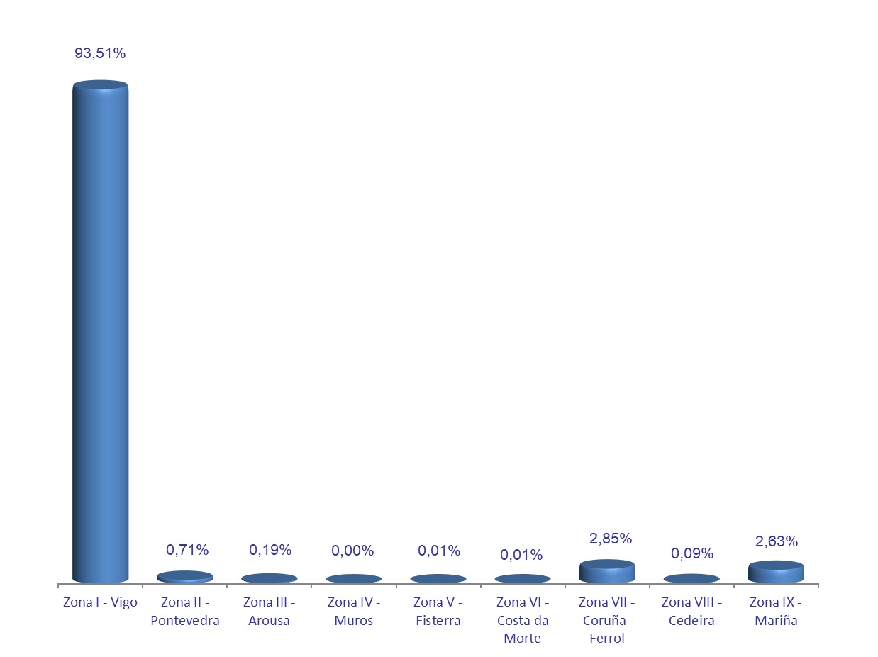 | Zona I - Vigo | 250 | 4.565.080 | 93,51% | 24.306.192 | 91,43% | 5,32 |