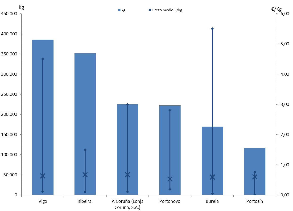 | A Coruña (Lonja Coruña, S.A.) | 130 | 225.482 | 12,75% | 150.218 | 13,79% | 0,67 |