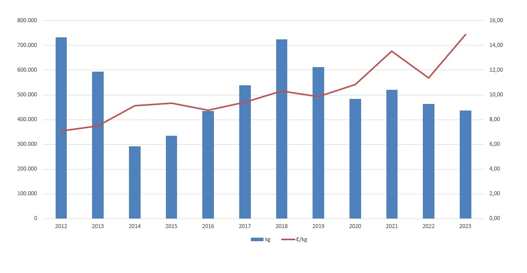 | Nº días | kg | % | Euros | % | Euros/kg | |