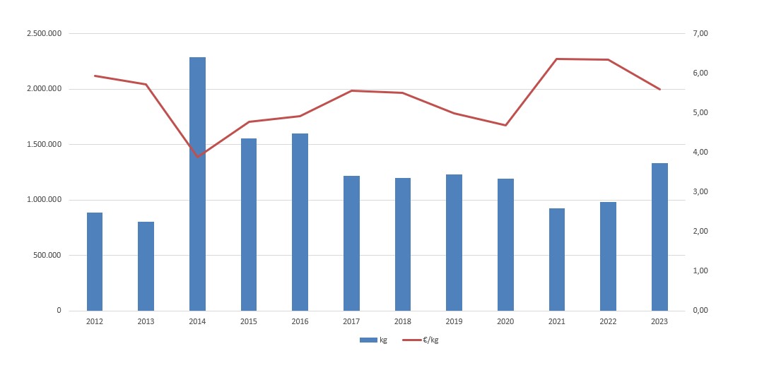 | Nº días | kg | % | Euros | % | Euros/kg | |