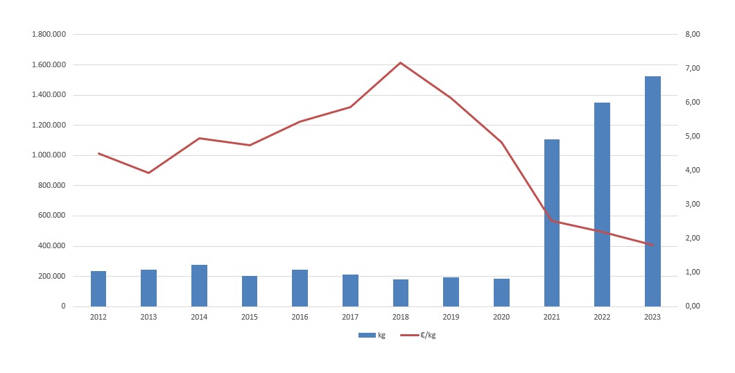| Nº días | kg | % | Euros | % | Euros/kg | |