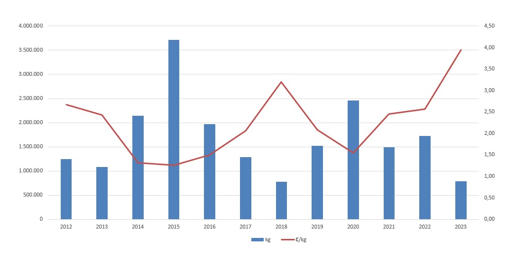 | Nº días | kg | % | Euros | % | Euros/kg | |