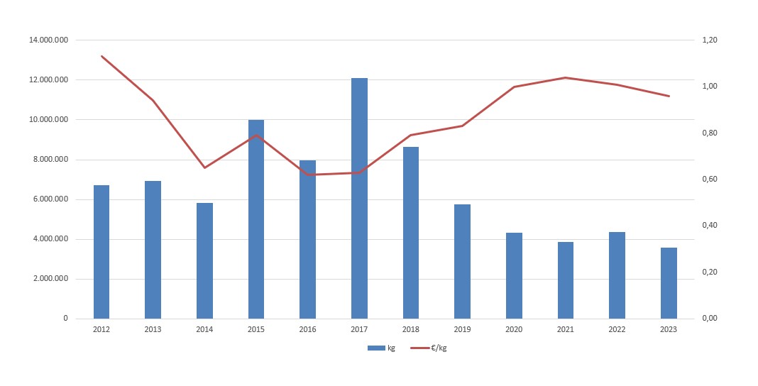 | Nº días | kg | % | Euros | % | Euros/kg | |