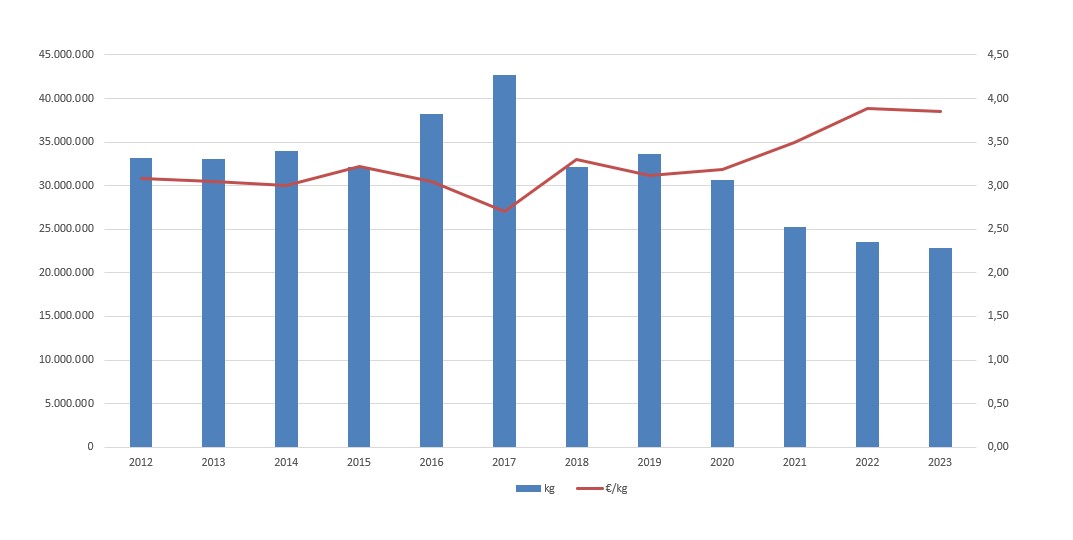 | Nº días | kg | % | Euros | % | Euros/kg | |
